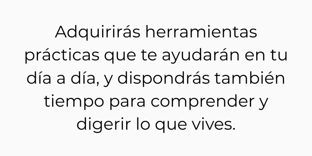 Cuando empecé me sentía perdida y sin motivación. Poco a poco fui encontrando claridad y aprendí herramientas que hoy uso en mi día a día.